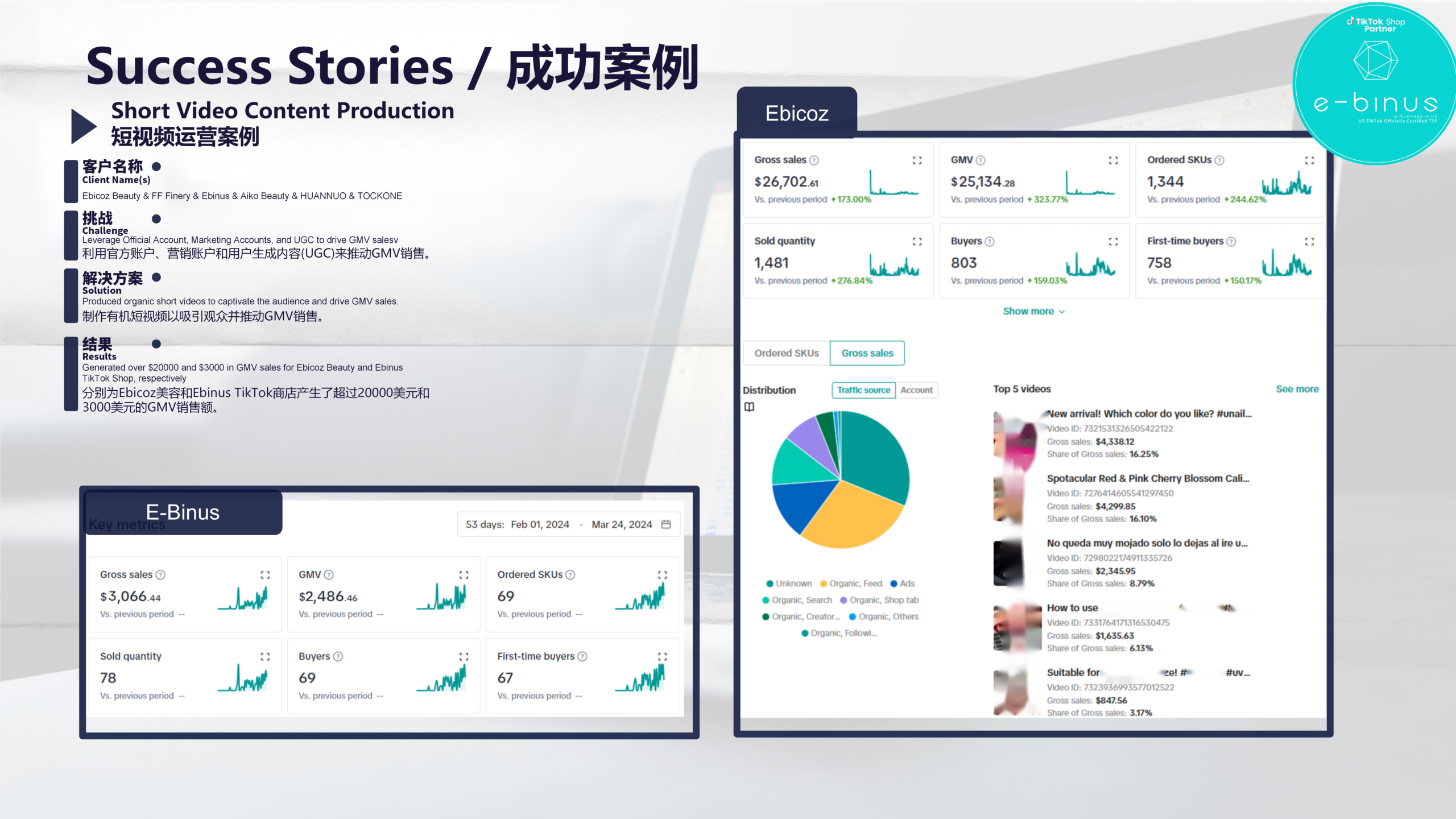 Our professional video production team creates eye-catching TikTok content for you, increasing brand exposure and user engagement.
